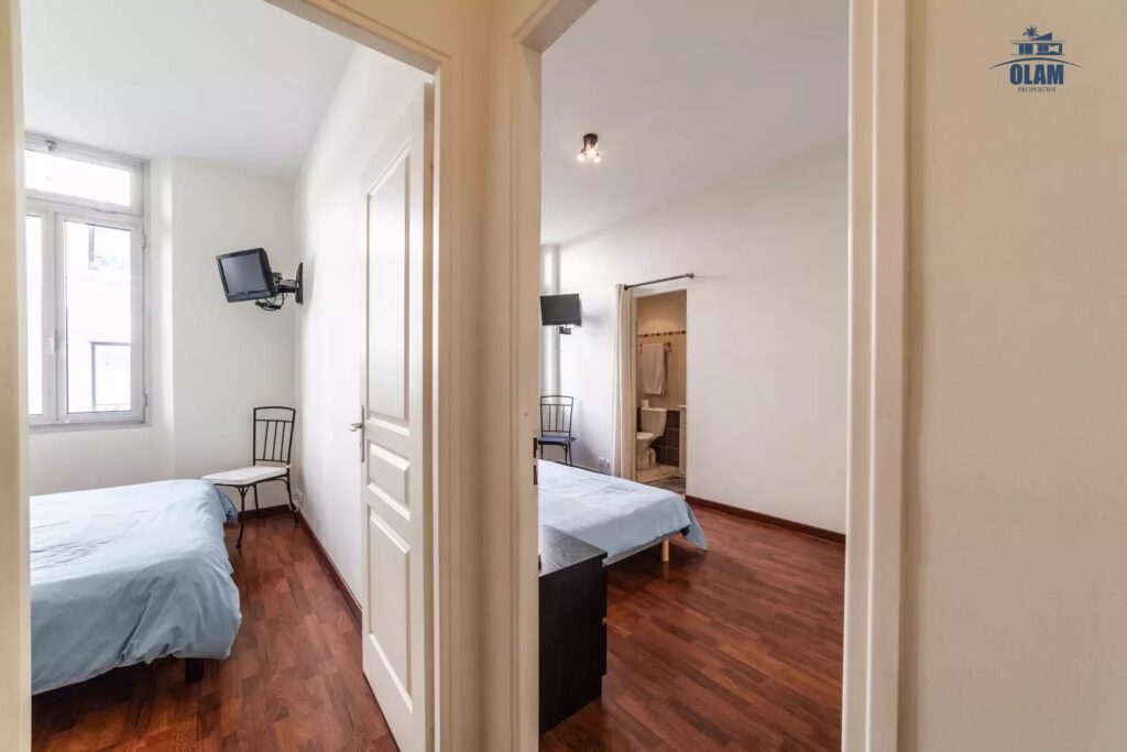 Possibility to rent a second apartment on the same floor, 2 rooms 6 pax occupancy and to reunite to have in all 5 rooms and 12 beds