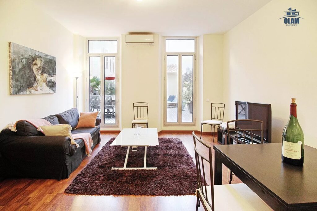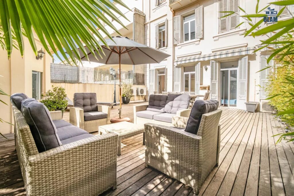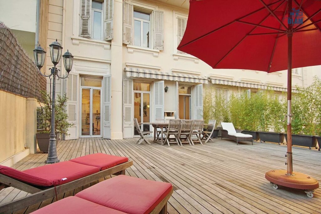 Very large “family style” apartment with an incredible terrace in the heart of Cannes, only one minute walk from the train station and two minutes from La Croisette