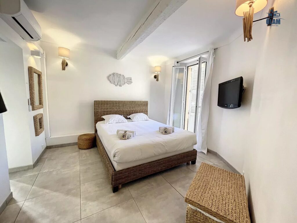 In the heart of Cannes, 1 mn off Palais des Festivals or the famous pedestrian street Meynadier (all shops, bakery, supermarket, …),in a charming small building, cozy 2 rooms apartment entirely renewed into a Modern and contemporary layout: