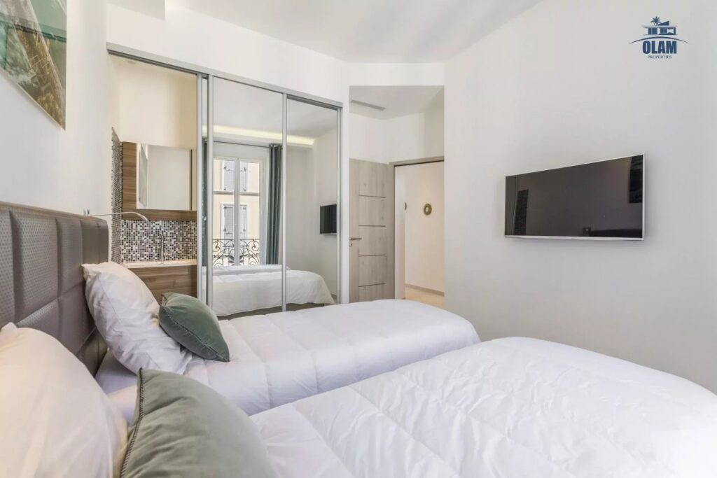 Thanks to its central location, all shops are nearby. You can discover the city on foot since you are ready to the main shopping street rue d’Antibes, and a few minutes from the Meynadier pedestrian street, the Palais des Festivals and Congress and a few steps from the famous Croisette and beaches, from the train station or the rue des Hoche restaurants. The Forville Provencal market, the port and the charming alleys of the old town and Suquet are all nearby.