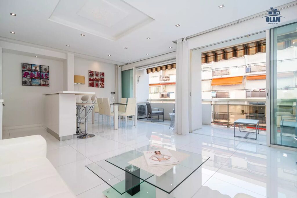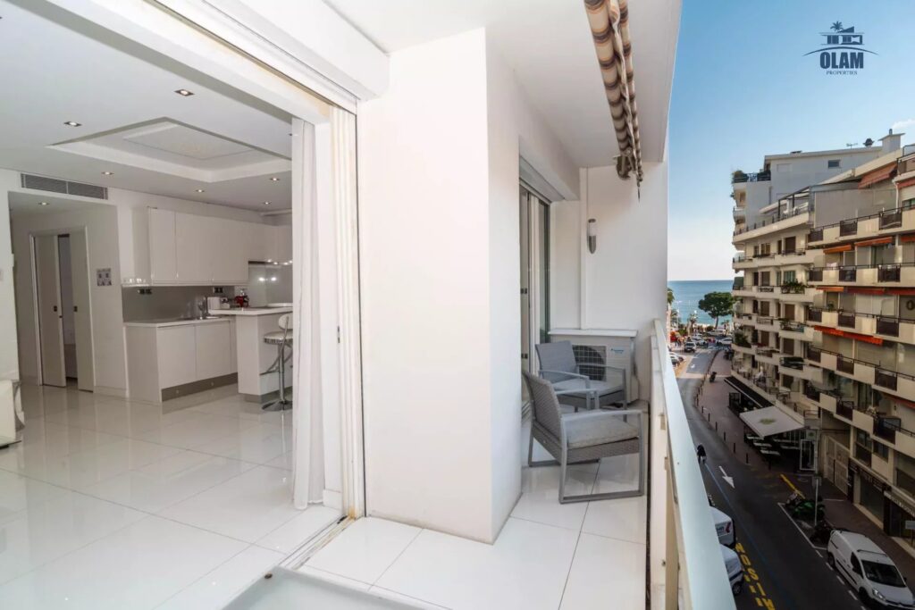 Cannes Croisette 1 minute : ModeOlam Properties, specialist of the seasonal rental in Cannes, is happy to welcome you in this exclusive modern 3 rooms apartment located in a building of standing adjoining the famous palace Hotel Martinez, on the Croisette!