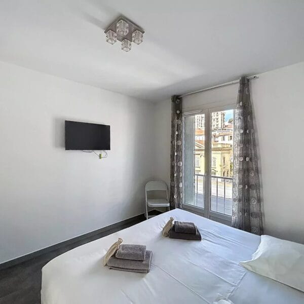 The apartment is located in the Marché Forville district, just a few minutes’ walk from the Palais des Festivals and the nearest beaches.