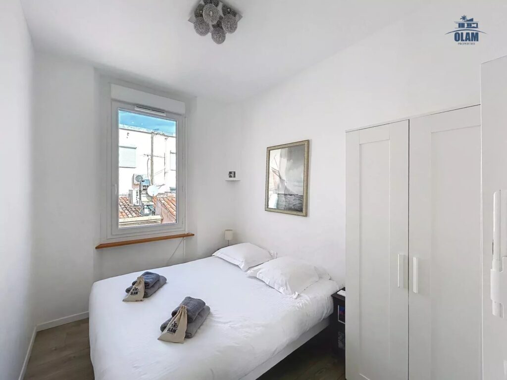 Both bedrooms overlook Cannes’ main pedestrian street (Rue Meynadier).