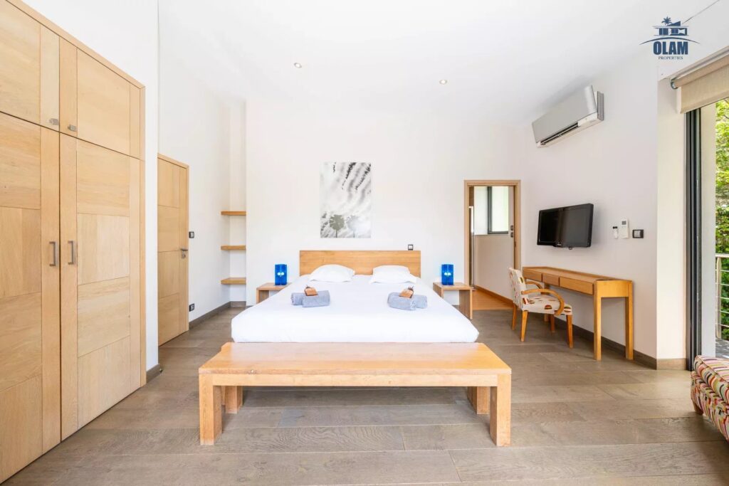 Luxury villa of 3229 sq ft, including 6 bedrooms with their own bathroom, Salon (TV, DVD),guest toilets, fully equipped US kitchen (oven, microwaves, dish washer,US fridge, washing machine…),cinema room, big terrace with furnitures, private pool