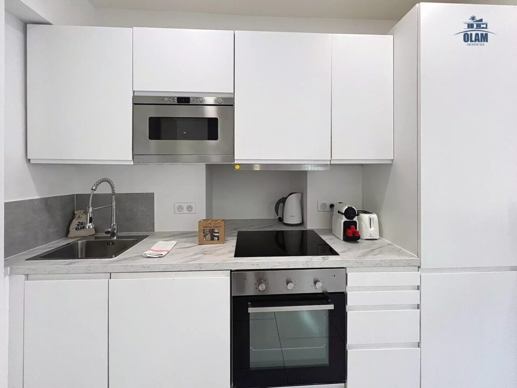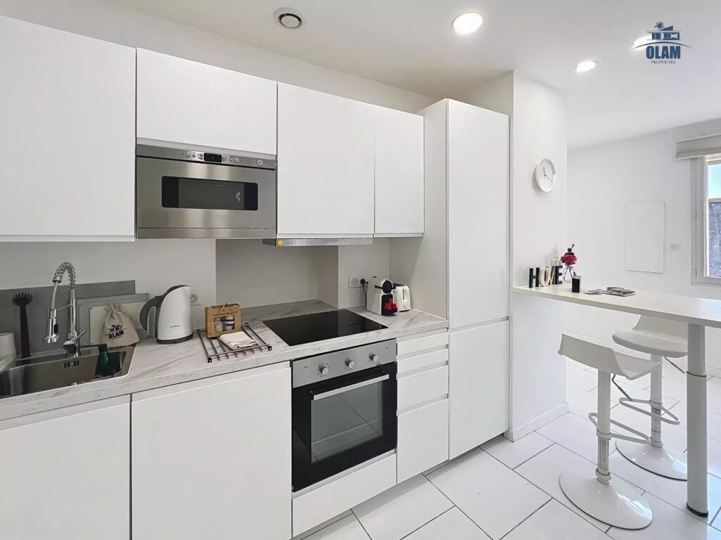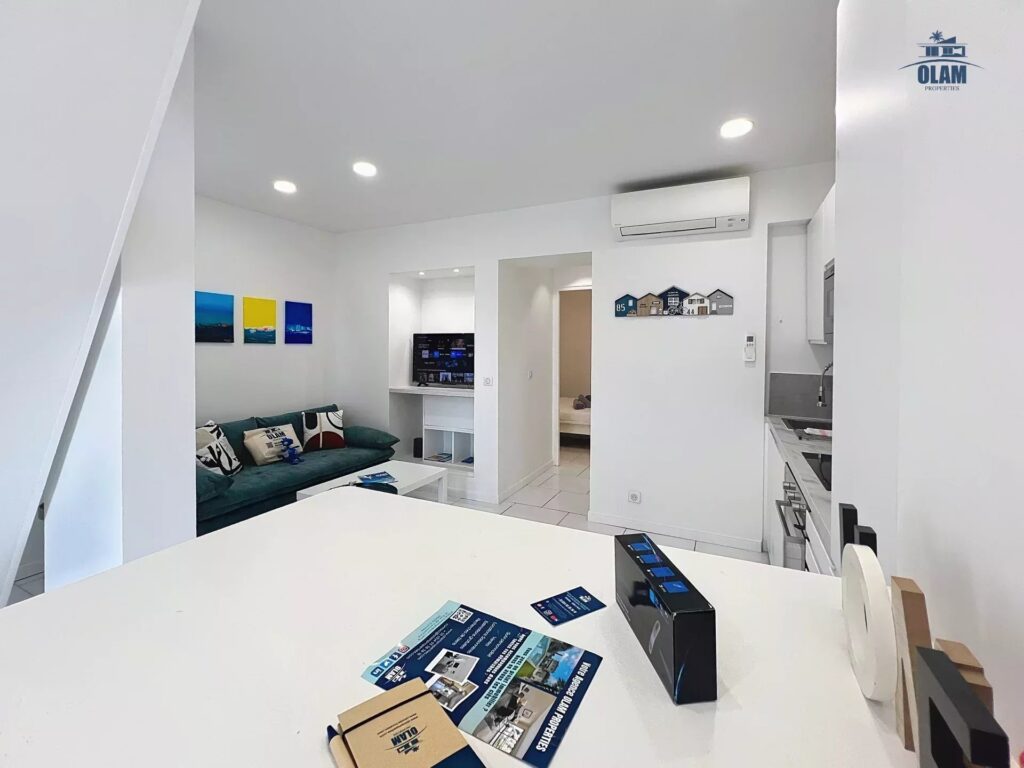 The bright and spacious living area welcomes you with its modern décor and warm atmosphere 🌞. The open-plan kitchen, fully equipped 🍷, flows seamlessly into the dining area and cozy lounge, ideal for relaxing evenings or sharing meals after a day at the beach or an evening on the Croisette.