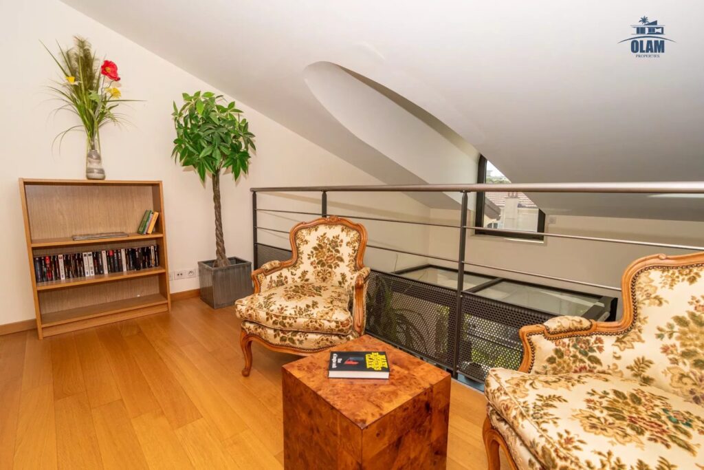 Decorated with care and renovated with prestigious materials in 2020, in a recent luxury residence with gardens, green spaces and elevator, this beautiful 3/4-room duplex apartment with fully-equipped mezzanine comprises: