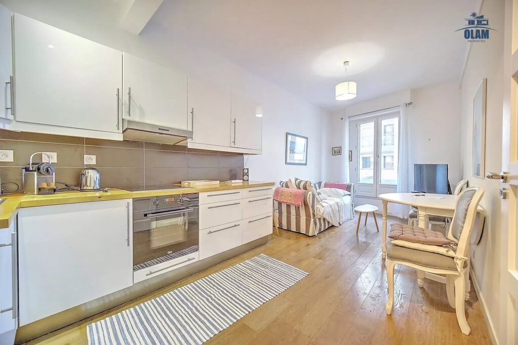 Ce joli 2 pièces de35 m² entièrement climatisé avec wifi saura vous séduire par sa décoration contemporaine et sa cuisine américaine ouverte sur le séjour, totalement équipée et fonctionnelle.