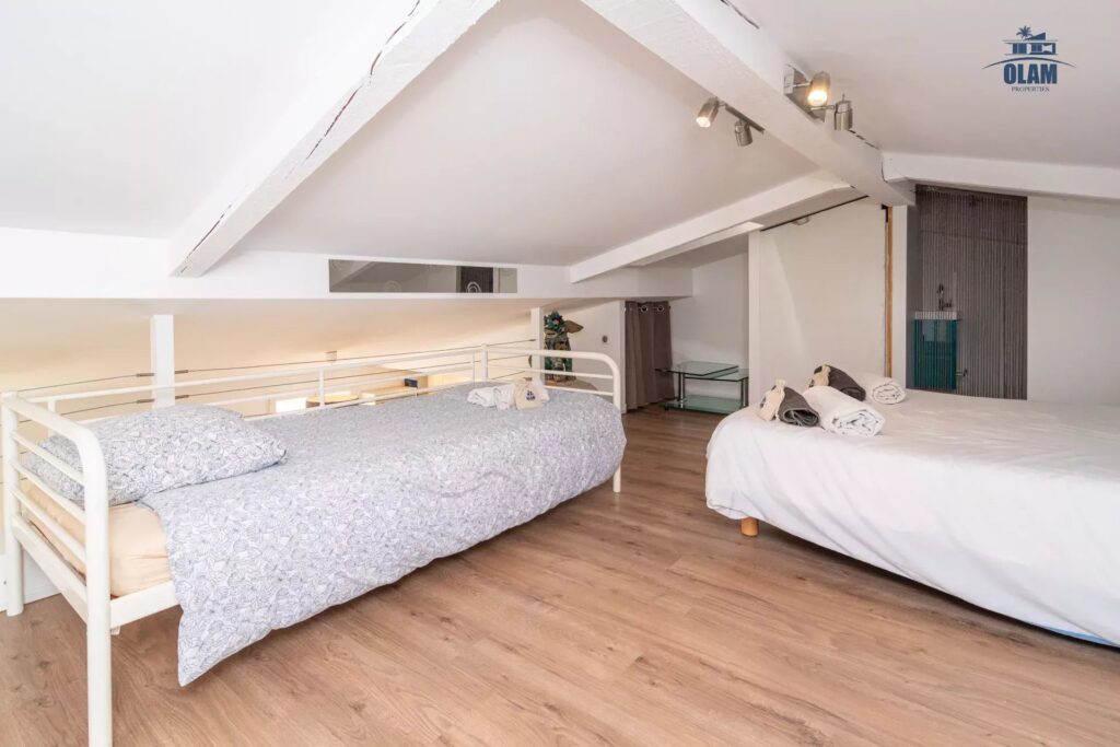 Une mezzanine offrant 2 couchages supplémentaires peut être mise à disposition sur simple demande pour accueillir les familles plus nombreuses ou les plus grands groupes.