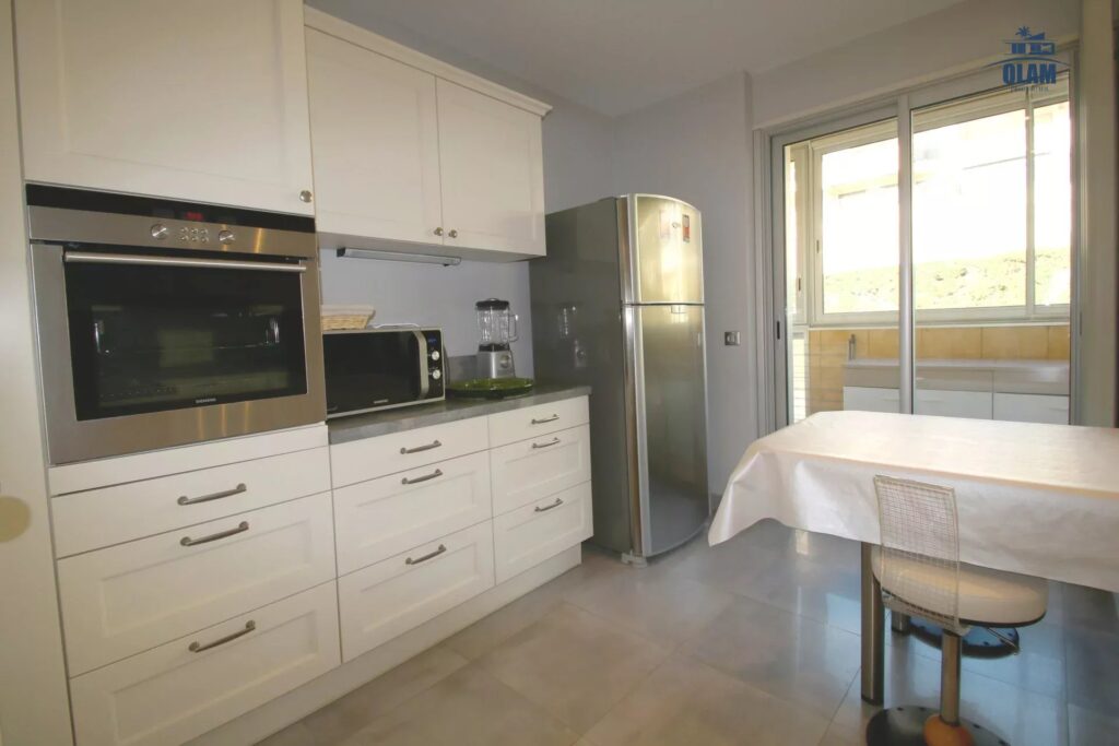 – Une cuisine tout équipée (four, frigo, four à micro-ondes, lave-vaisselle…) avec loggia