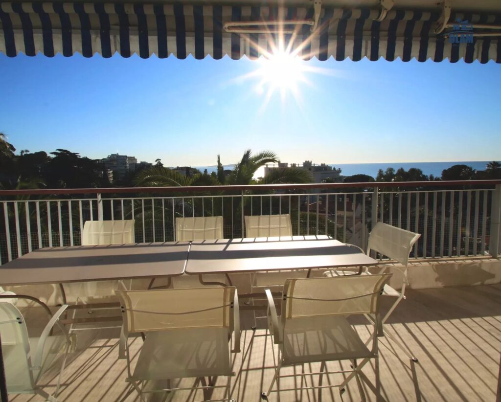 La terrasse d’angle est équipée pour 8 personnes, vous permettant d’admirer la mer en tout confort.