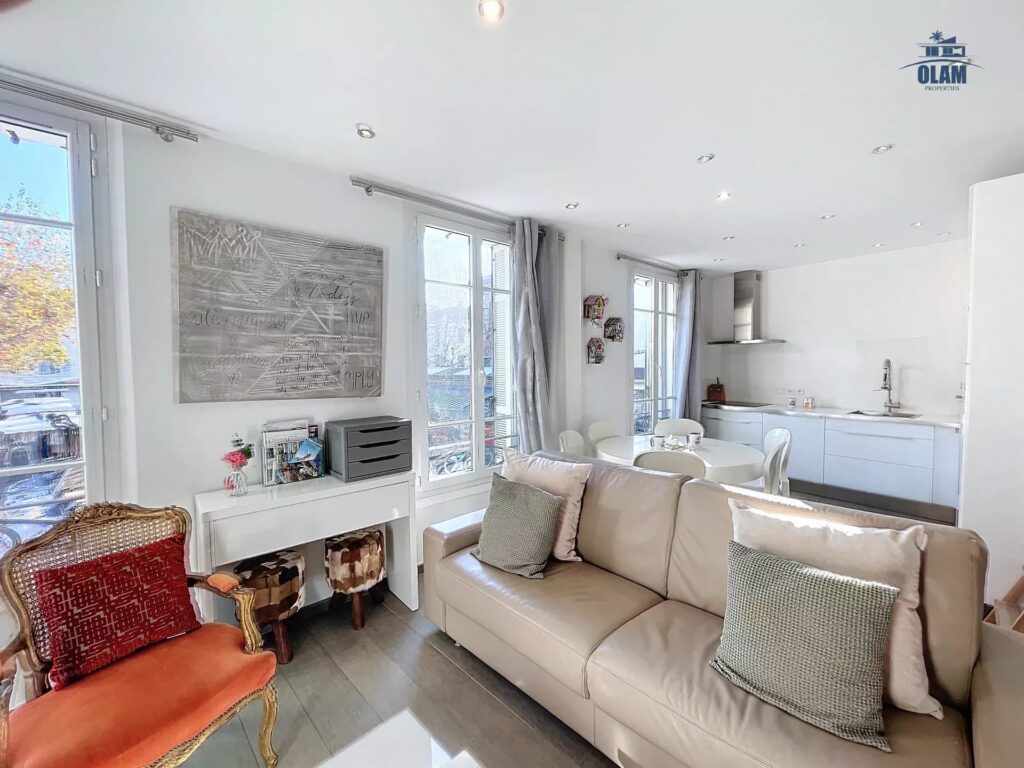 Beau 3 pièces d’environ 60m2 entièrement refait dans un style contemporain, moderne, sobre et raffiné. Il offre des prestations haut de gamme.
