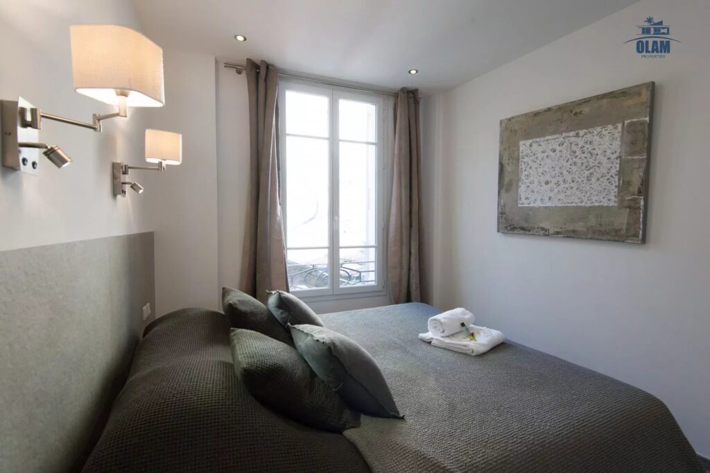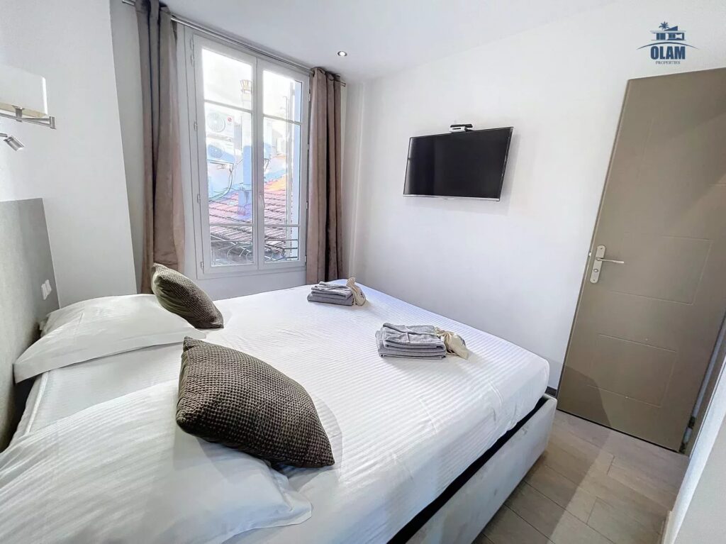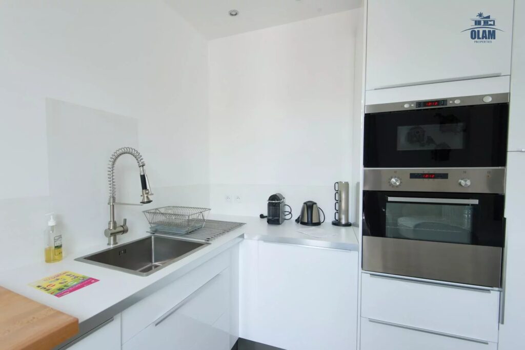 L’appartement est composé d’une vaste pièce principale équipée d’un canapé-lit 2 places avec literie haut de gamme Bultex 160×200, d’un grand Téléviseur LCD avec toutes les chaînes internationales et d’une cuisine équipée américaine ouverte sur le séjour.