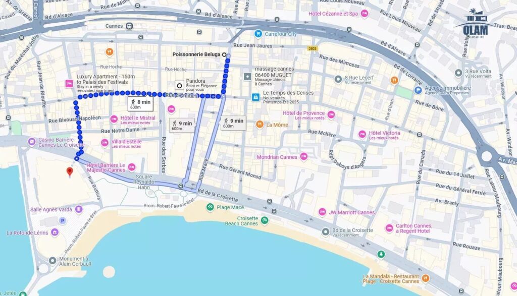 – Gares (trains, bus) , Plages et Croisette, Palais des festivals …