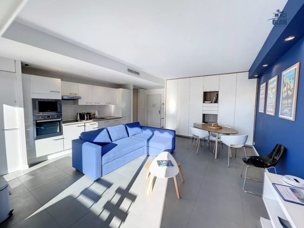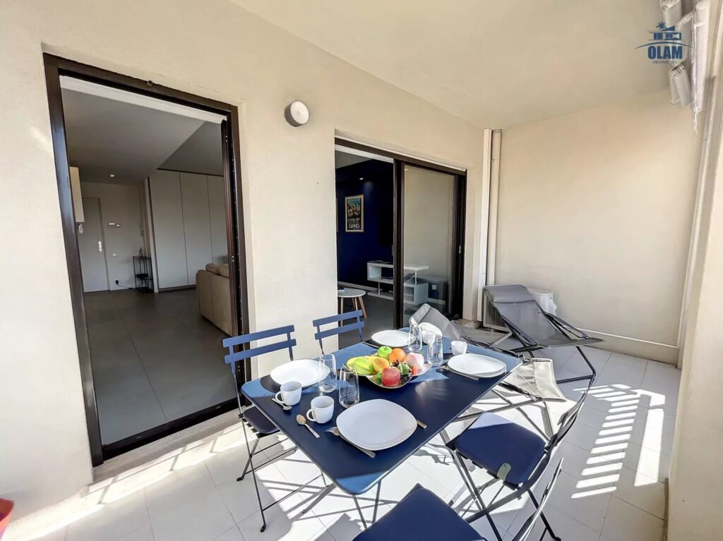 Dans une résidence standing à 3 min à pied du marché Forville et 8 min du Palais des Festivals, Olam Properties est heureux de vous accueillir dans ce lumineux, 2 pièces design, parfaitement équipé avec terrasse en plein centre de Cannes.