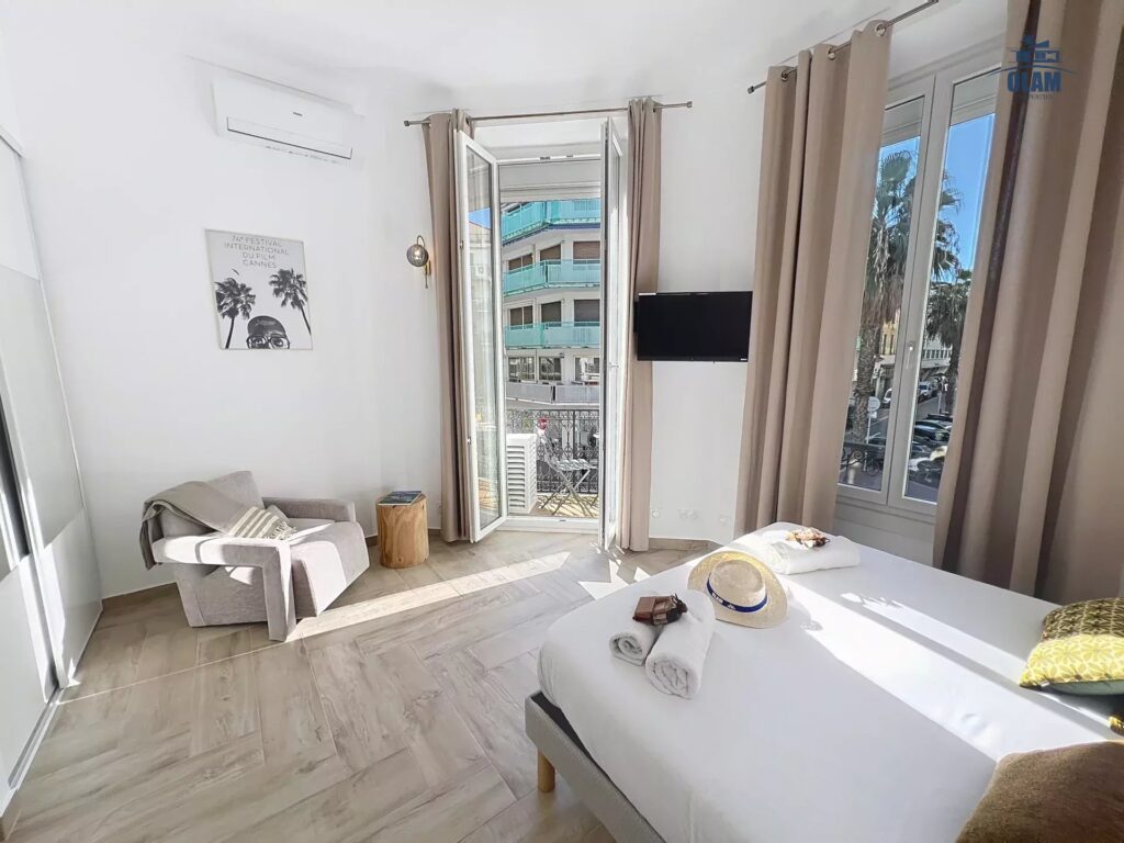 A quelques pas, vous serez sur la célèbre Croisette, la gare SNCF ou encore le Palais des Festivals et des Congrès.