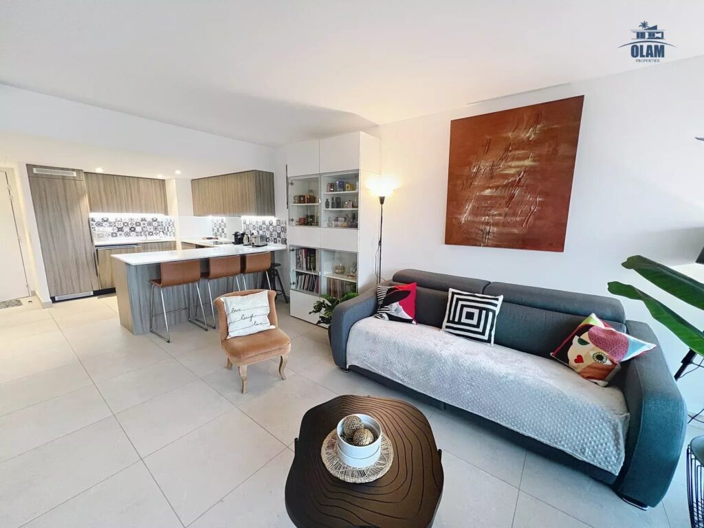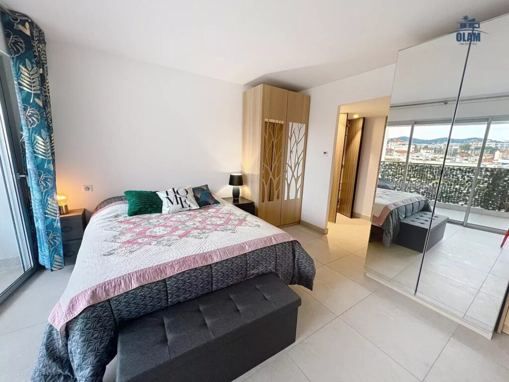Superbe appartement au 4e étage, il est composé comme suit : Séjour/Salle à manger avec TV, donnant sur une terrasse. Cuisine entièrement équipée ouverte. Une Chambre maitre avec 1 lit double, et salle d’eau/WC.