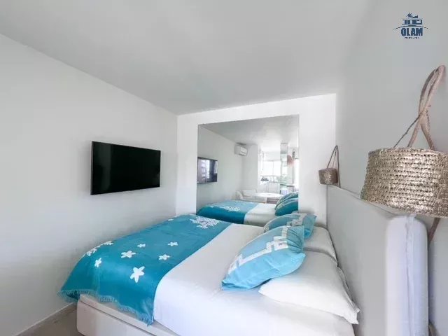 Cet appartement de 30m2 est composé d’un salon avec canapé, table pour les repas, une cuisine ouverte équipée (four, réfrigérateur, congélateur, plaque de cuisson, micro-ondes, lave vaisselle, machine à laver, cafetière nespresso, bouilloire,…) un coin nuit (ouvert) avec un lit double (160cm), une salle de douche avec wc.