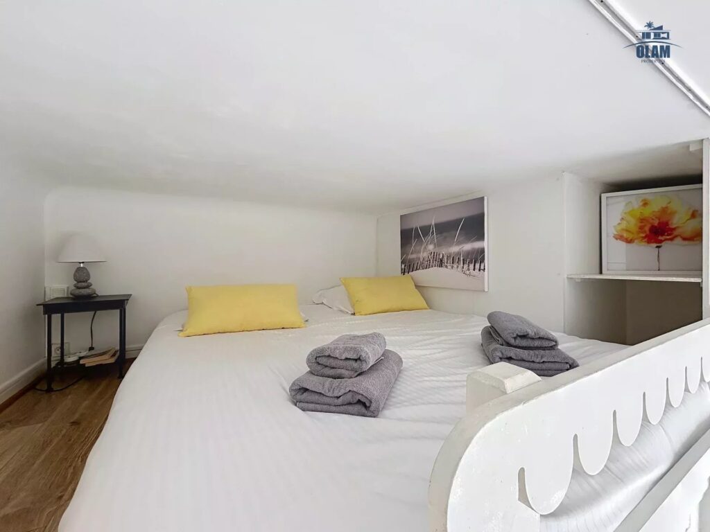 L’appartement se compose d’un salon avec canapé convertible (pour couchage 2 personnes 140cm), une grande armoire. Une cuisine ouverte sur le salon entièrement équipée (four micro-ondes, plaque vitrocéramique 2 feux, réfrigérateur, bouilloire, grille pain,…). En mezzanine, un lit 2 personnes couchage en 160 cm. Une salle de douche moderne avec douche avec wc.