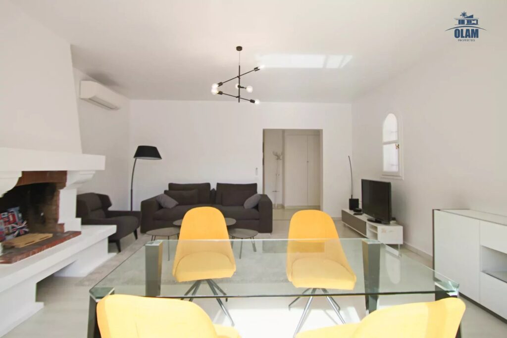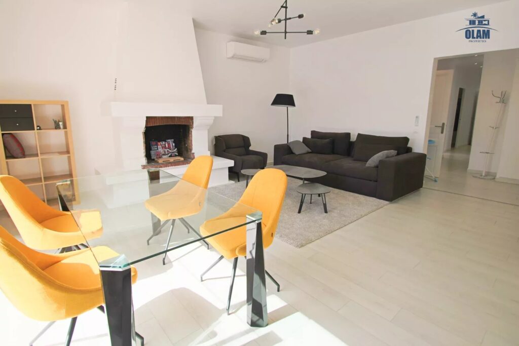 – d’une vaste pièce à vivre avec cheminée, canapé d’angle hyper confort, et d’un table à manger pour 6 – 8 persones