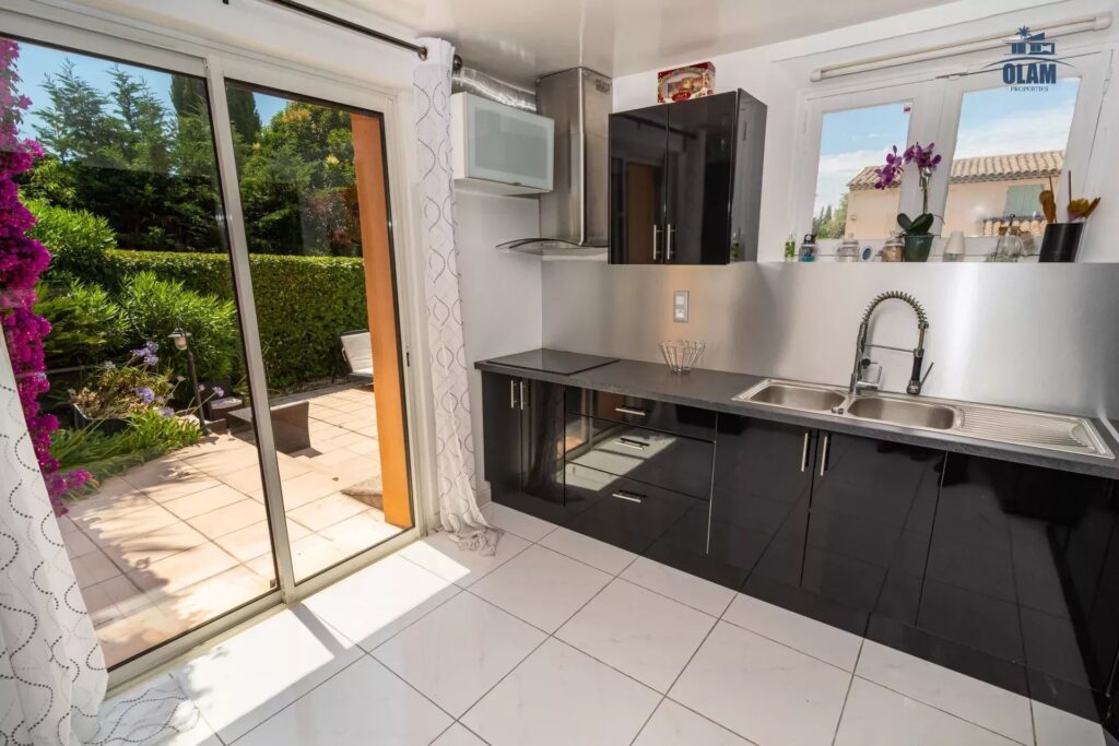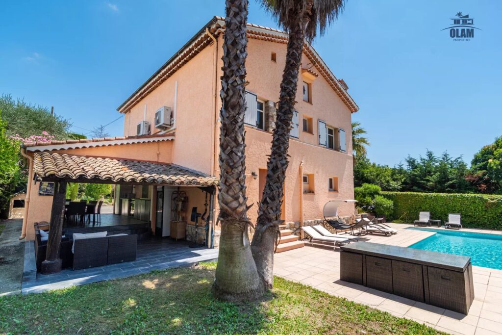La maison est distribuée sur 2 niveaux et vous ravira par sa situation géographique idéale, vous profiterez du calme du village de Mougins tout en étant à 15 minutes de Cannes.